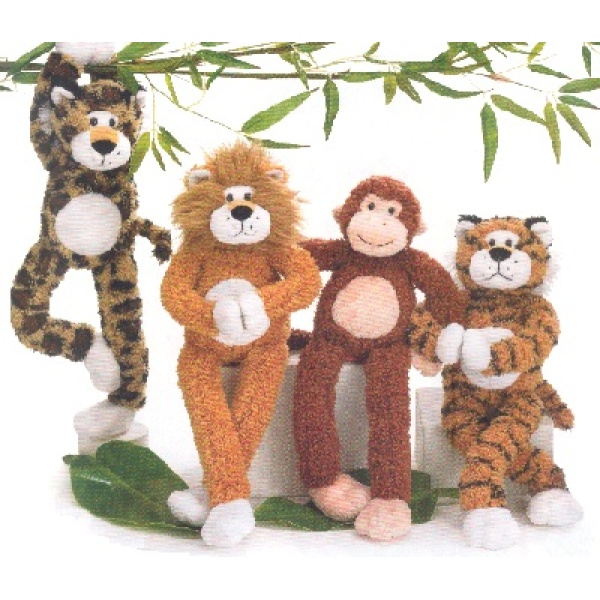 These 14 1/2″ “animals” will hang out anywhere with velcro hands and feet!