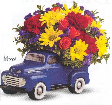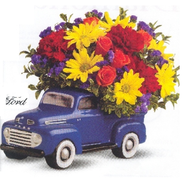 Drive home your “get well” message with bold bright flowers delivered in a ceramic keepsake classic blue ’48 Ford pickup truck by Teleflora.