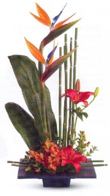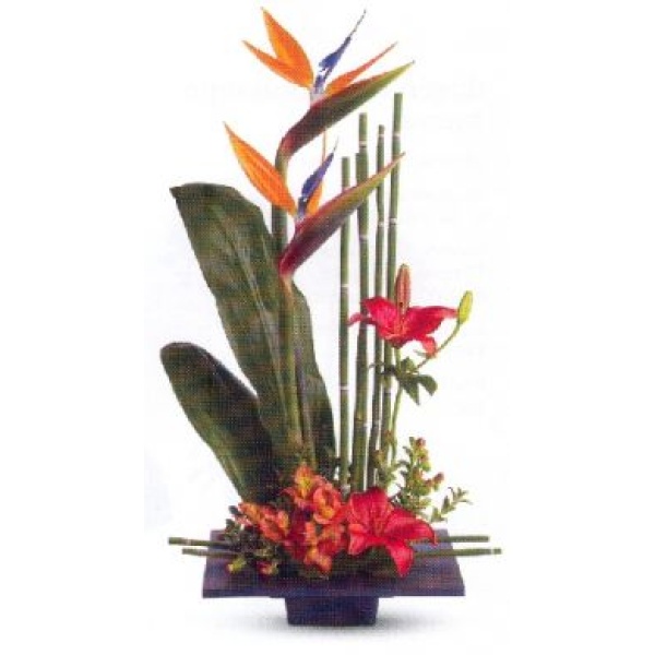 Tropical flowers are the boldest way to cure all ailments. (Contemporary containers may vary)