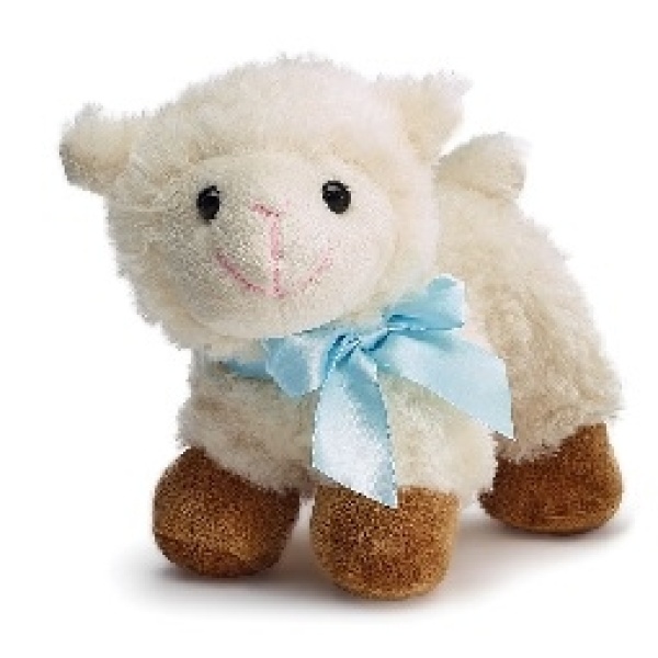 Standing 7″ lamb plush with light-blue ribbon bow around neck…is even more special with its tummy chip that plays, “Twinkle, Twinkle, Little Star.”