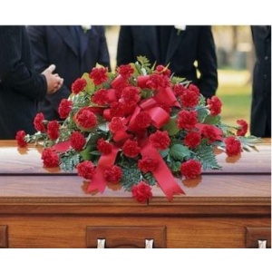 This classic casket spray featuring red carnations expresses your everlasting love and support.