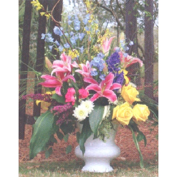 In a beautiful display of color, this white urn (weatherproof urns may vary) is a heartfelt gift of caring concern.