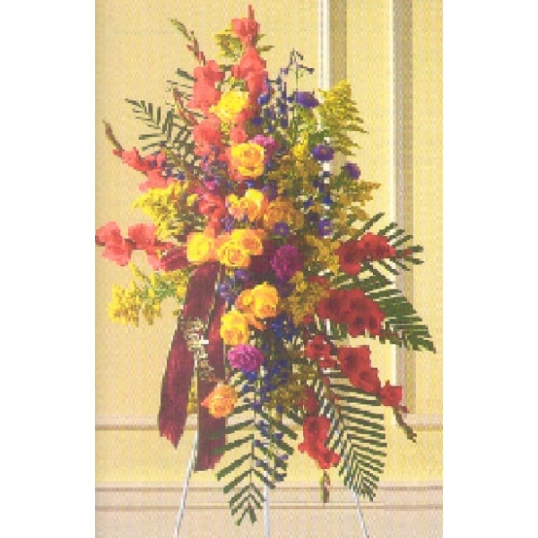 Saying goodbye in the language of colorful flowers make this standing spray an easy choice.