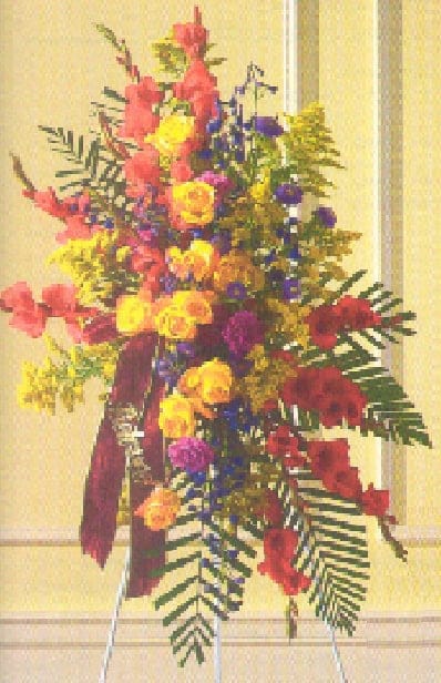 Saying goodbye in the language of colorful flowers make this standing spray an easy choice.