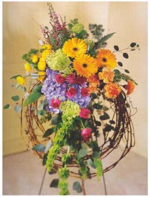 Beautifully express your affection and respect for lost friend, relative or co-worker with this contemporary grapevine wreath that could also be used after the service as a home door piece.