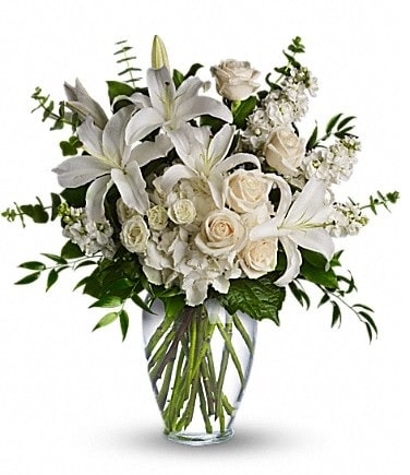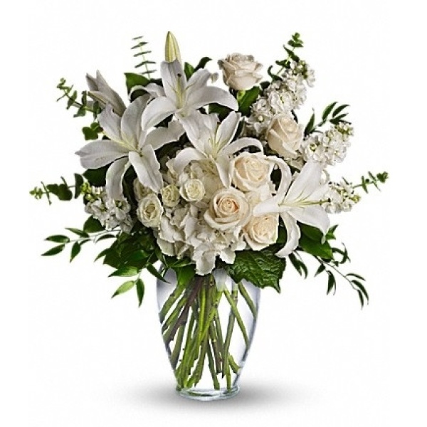 A fresh bouquet of white flowers is a comforting reminder of your sympathic concern.