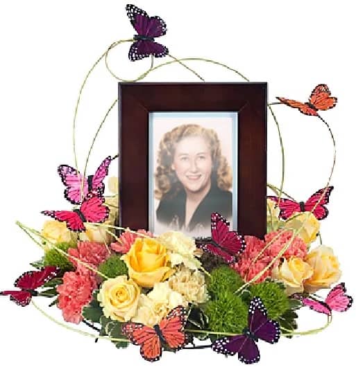 Butterflies surround the photo of your loved one as a sign of hope and love.