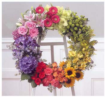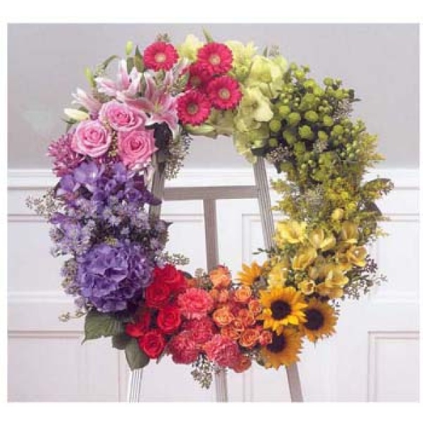 This multi-colored profusion of flowers is an elegant expression of respect.